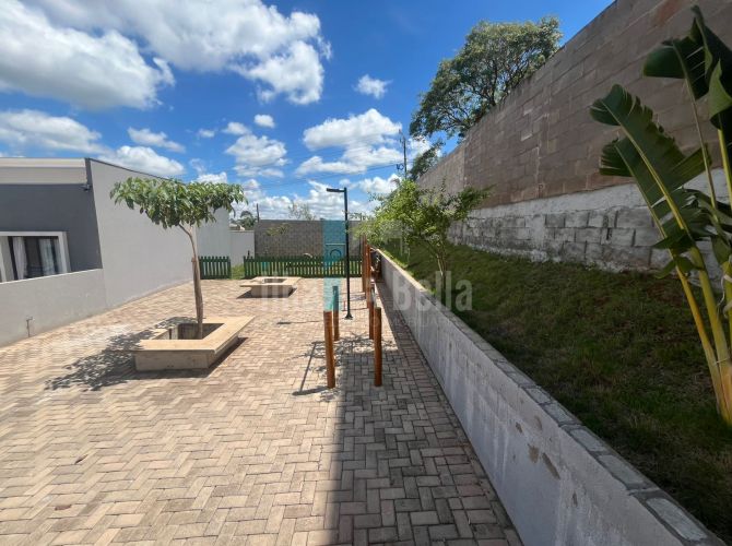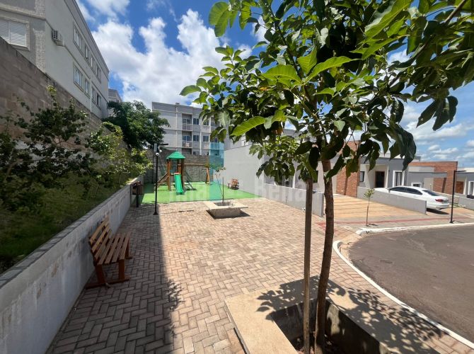 Residência 80m² área construída e 161m2 de área total, sendo: 01 suíte, 02 quartos, sala/cozinha, bwc social, lavanderia e garagem descobertas para dois veículos. Condomínio oferece: área de lazer com playground, salão de festa, estacionamento para visitantes, medidores individuais, espaço Pet, portaria automatizada.