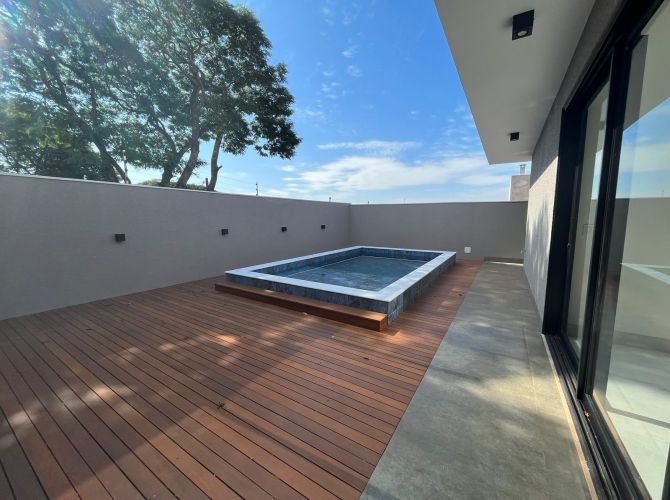 CENTRAL PARK. Com área de 414,m² de terreno (13,80X30,00) e 251,80m² de área construída, contendo: 01 suite com closet, 02 suites, escritorio, lavabo, sala de estar integrada com espaço gourmet, despensa, bwc social, área de serviço, piscina e garagem. Acabamento de excelente qualidade. Pisos em porcelanato e laminado, Portas laqueadas, esquadrias em alumínio, janelas com persianas motorizadas, Gesso, Iluminação em LED, Ar-condicionado nos quartos / escritório e ar condicionado K7 no espaço gourmet, Aquecimento Solar e muito mais.