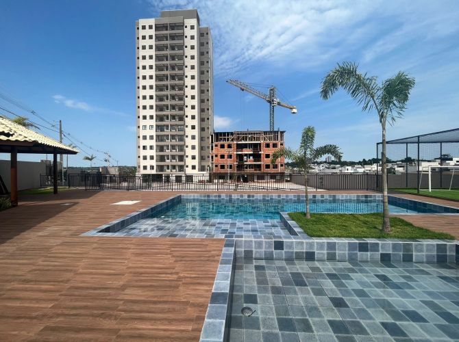 Apartamento no 3° andar com 55,62m² de área privativa sendo: uma suíte, um quarto, sala, cozinha, lavanderia, bwc social e uma vaga de garagem. Condomínio com piscina, quiosque com churrasqueira, playground, vestiário, mini campo de futebol, academia, área verde e espaço gourmet com salão de festa.
