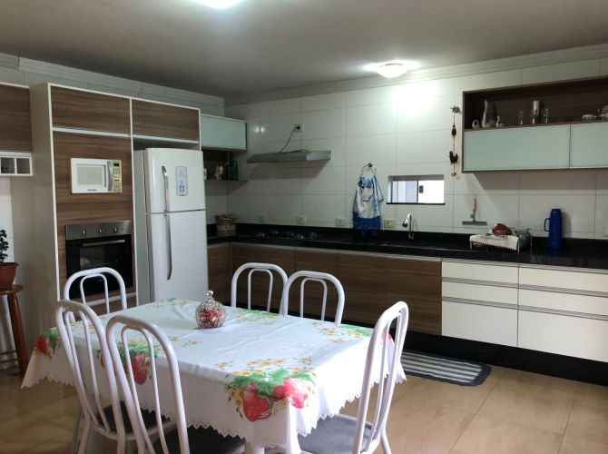 Sobrado localizado no Jardim Yonezu, contendo uma residência no piso superior com 172m² sendo: uma suíte, dois quartos, sala, bwc social, cozinha, lavanderia e churrasqueira. Piso inferior com 77m², sendo 2 vagas de garagem, lavanderia, bwc social, salão contendo bwc. Terreno possui 162 m². Obs: salão está locado.