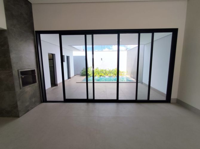Casa de alto padrão, contendo: 01 Suíte com closet, 02 Quartos, Banheiro, Sala e cozinha integrada com pé direito duplo, Piscina com jardim, Lavanderia, Banheiro externo, Garagem para 2 carros. Obs: Ótimo padrão de acabamento em gesso e luz de led.