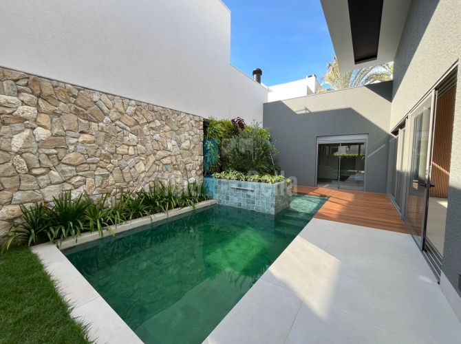 Residência de alto padrão em um dos melhores condomínios da cidade, próximo ao Shopping, residência 361m² de terreno e 242m² de área construída, contendo: 01 Suíte master, 02 suítes, sala de estar/TV, amplo espaço gourmet, lavabo, área de serviço, despensa, piscina e garagem. Possui marcenaria de altíssima qualidade, ar condicionado em todos os ambientes, aquecimento solar, persianas motorizadas, esquadrias em alumínio, porcelanato, iluminação em led e muito mais.