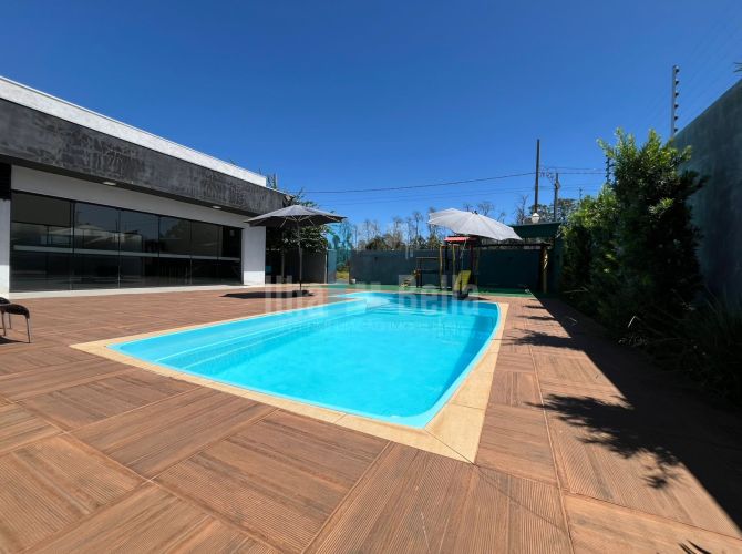 Espaço de lazer a venda localizado no Jardim Santiago, com 378m² de terreno e 113m² de área construída, sendo: 01 quarto, banheiro masculino e banheiro feminino, amplo salão com móveis planejados, geladeira, cervejeira, churrasqueira, espaço externo com piscina, playground, namoradeira. Excelente localização (dentro do perímetro urbano), fácil acesso.